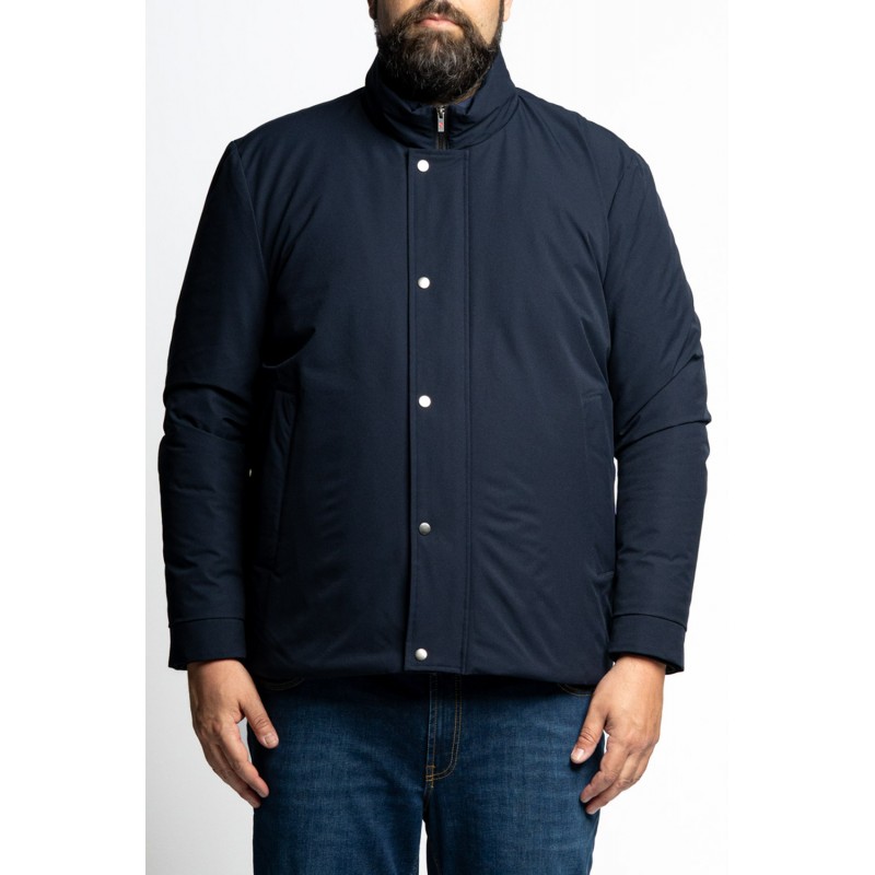 GIUBBOTTO DAL DESIGN MINIMAL, CHIUSURA CON ZIP COPERTA E BOTTONI A PRESSIONE. COLLO ALTO IMBOTTITO, MANICA LUNGA CON POLSINO SAGOMATO, FONDO DRITTO, TASCHE LATERALI OBLIQUE CON CHIUSURA A ZIP E INTERNO FODERATO.