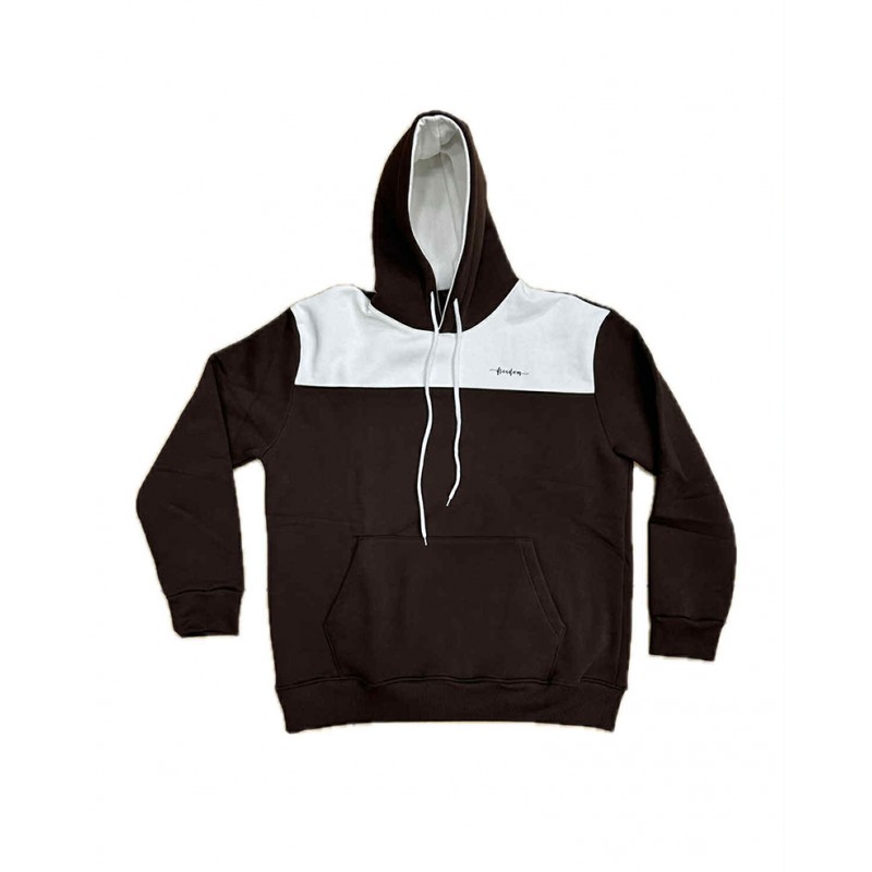 Felpa bicolore con cappuccio , tascone scaldamani sul davanti