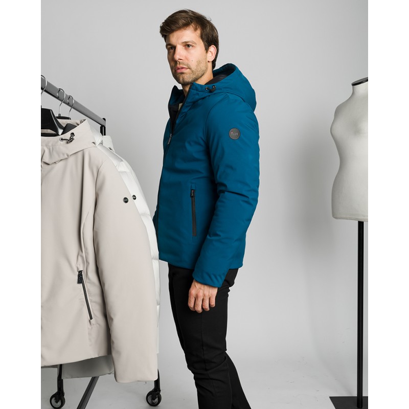 - Giubbino uomo con cappuccio, perfetto per protezione e stile.