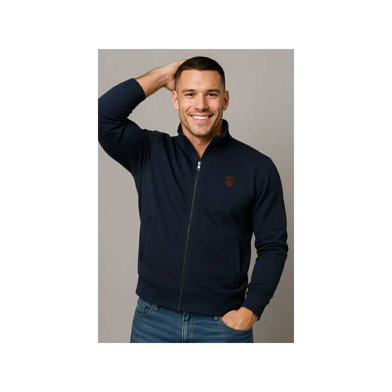 Felpa uomo Il Granchio in tessuto felpato , dal design curato nei dettagli. Il modello presenta chiusura full zip, collo alto con inserto in vellutino con stampa, tasche laterali rifinite con bordo in vellutino e ricamo sul petto. Completano il capo polsini e bordo in maglina, che garantiscono comfort e vestibilità. Una felpa calda e distintiva, ideale per il tempo libero con stile.